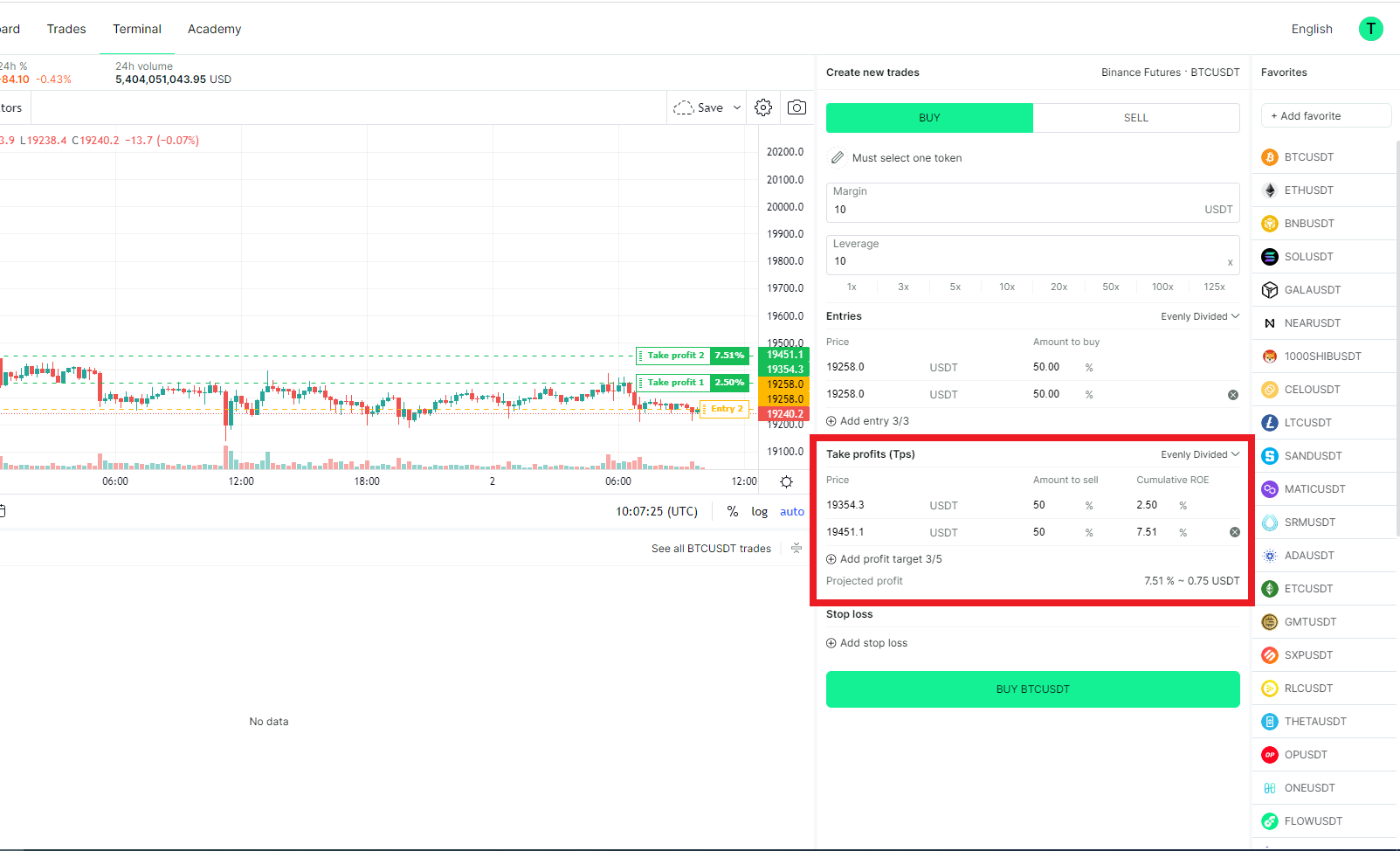 - Setup the take profits which are the points of price where your price hits the take profit threshold, and you will be in profit.