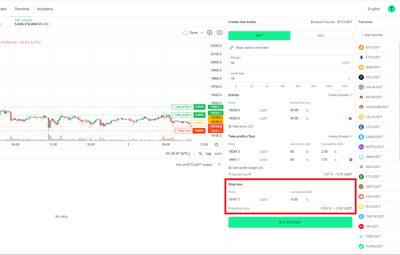 - Set up the stop loss. Of course, every investment can be risky. So don't forget to set your stop loss before you decide to trade.