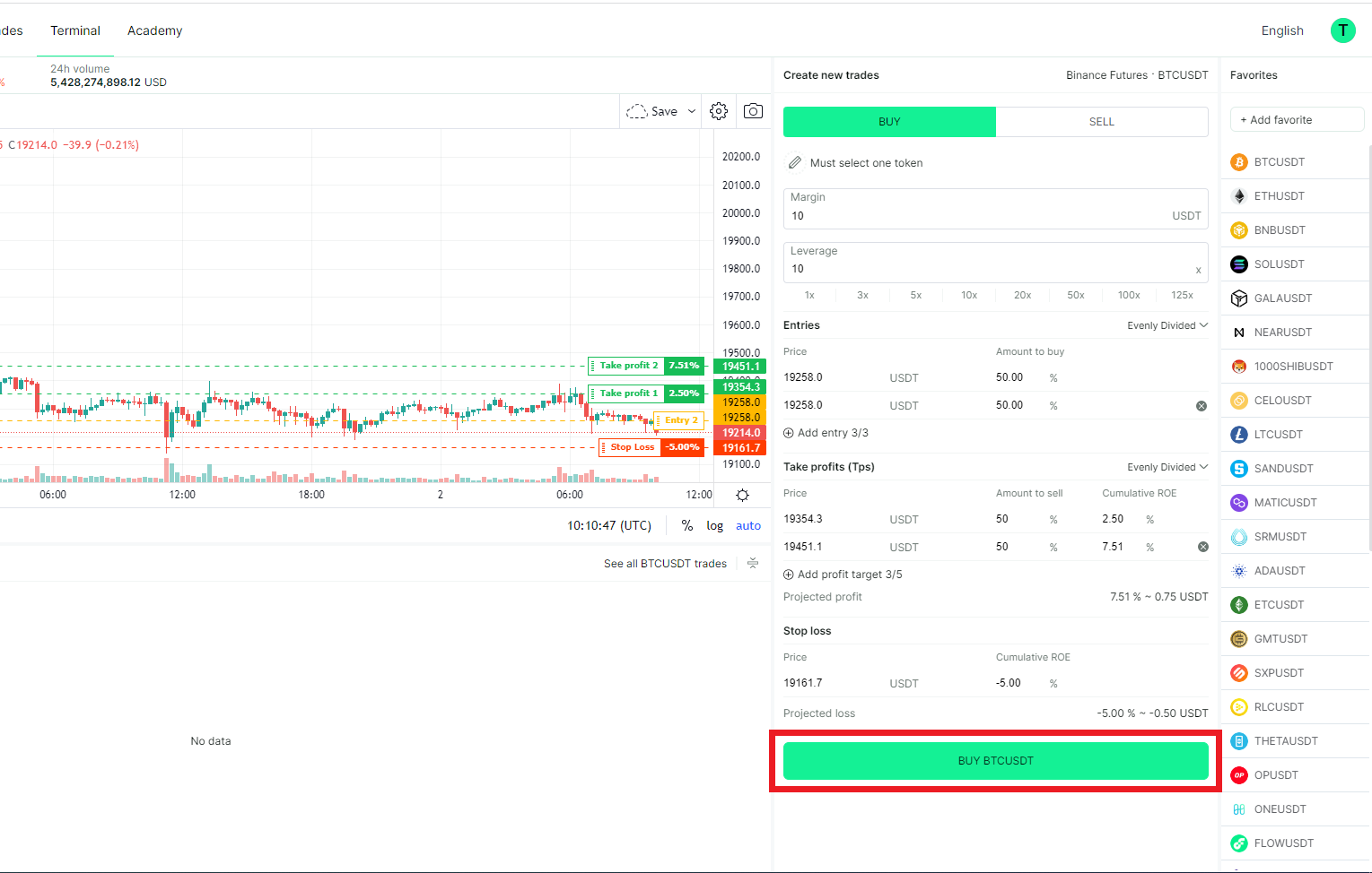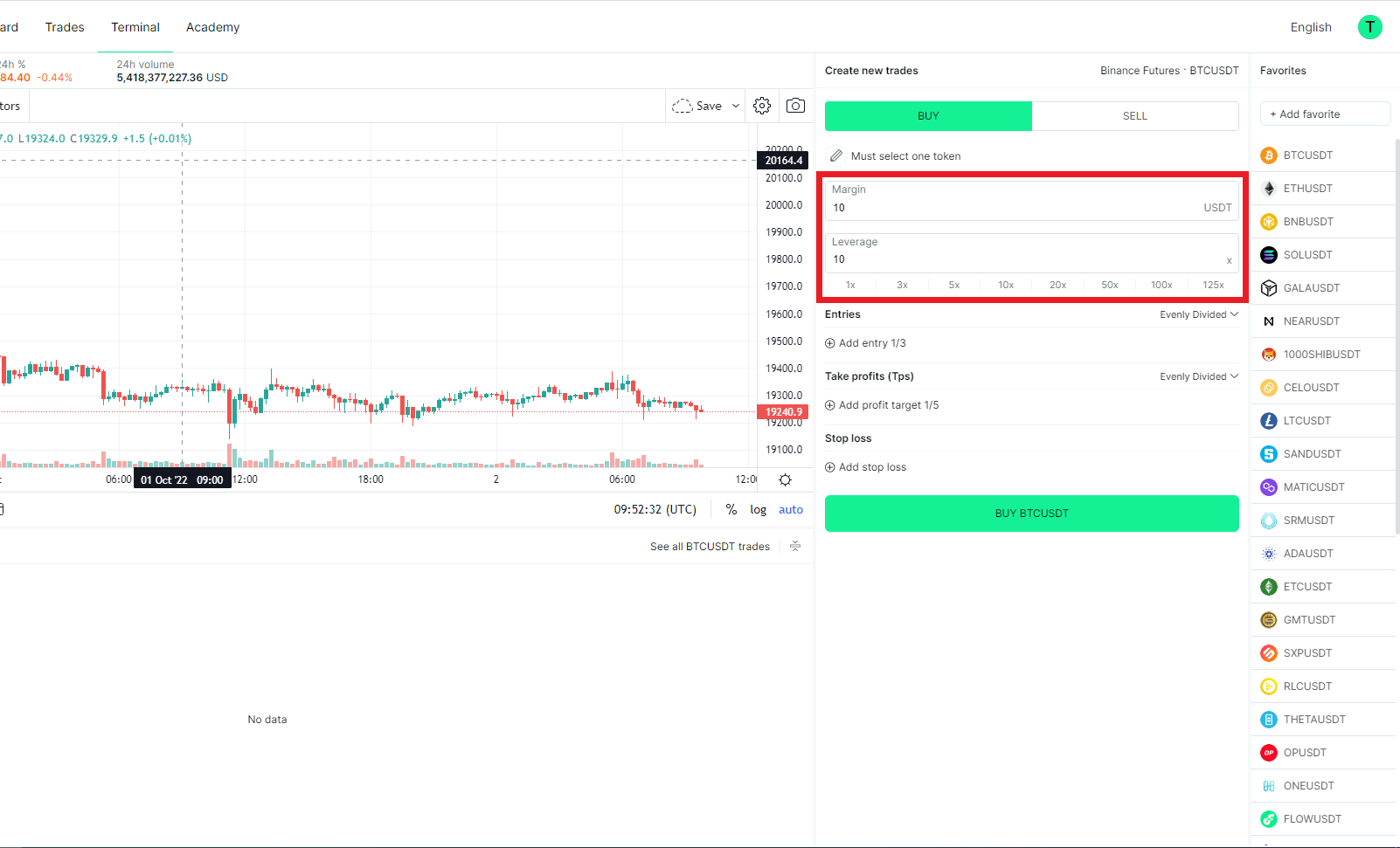 - Fill in the margin and leverage which will be decided how many coins or tokens you could buy.